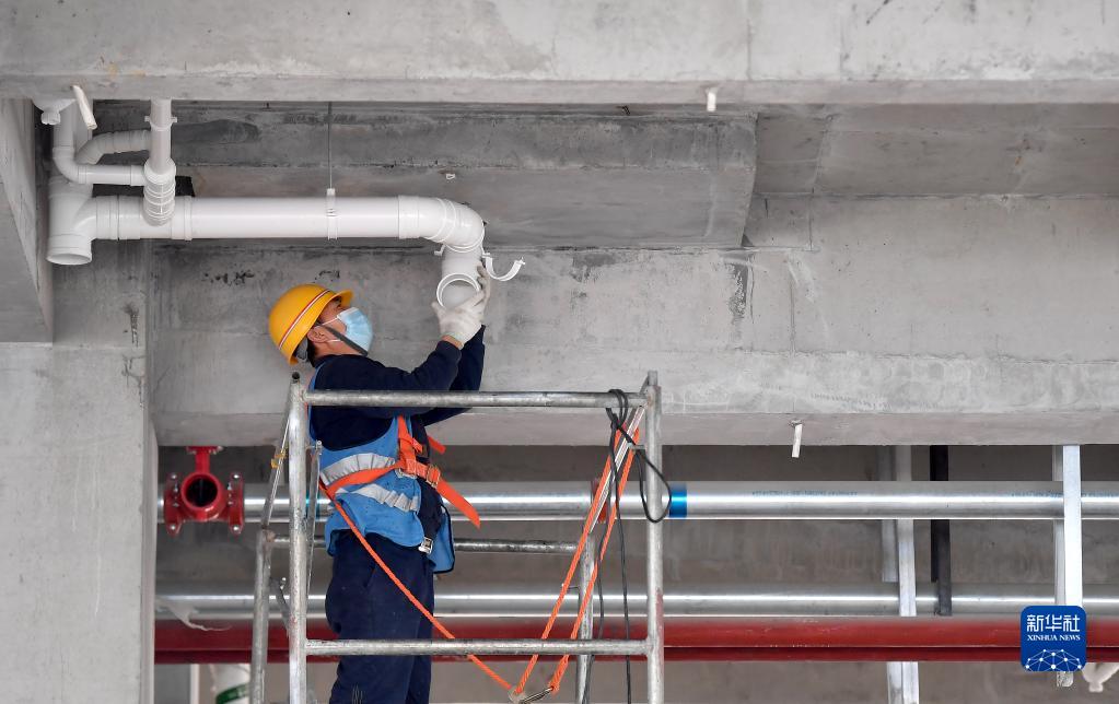 5月1日,中建二局陜西分公司的工人在陜西國際商貿學(xué)院項目工地施工。新華社記者 劉瀟 攝