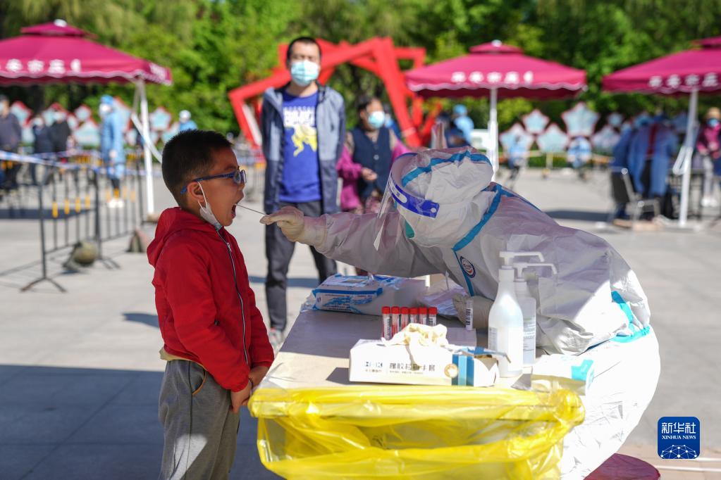 4月30日,在北京市大興區亦莊鎮一核酸采樣點(diǎn),醫護人員為市民進(jìn)行核酸采樣。新華社記者 彭子洋 攝