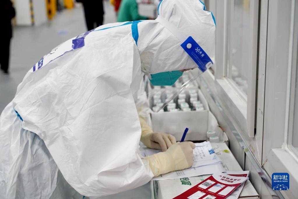 4月30日,上海臨港方艙醫院的醫護人員在整理感染者信息。新華社記者 楊有宗 攝