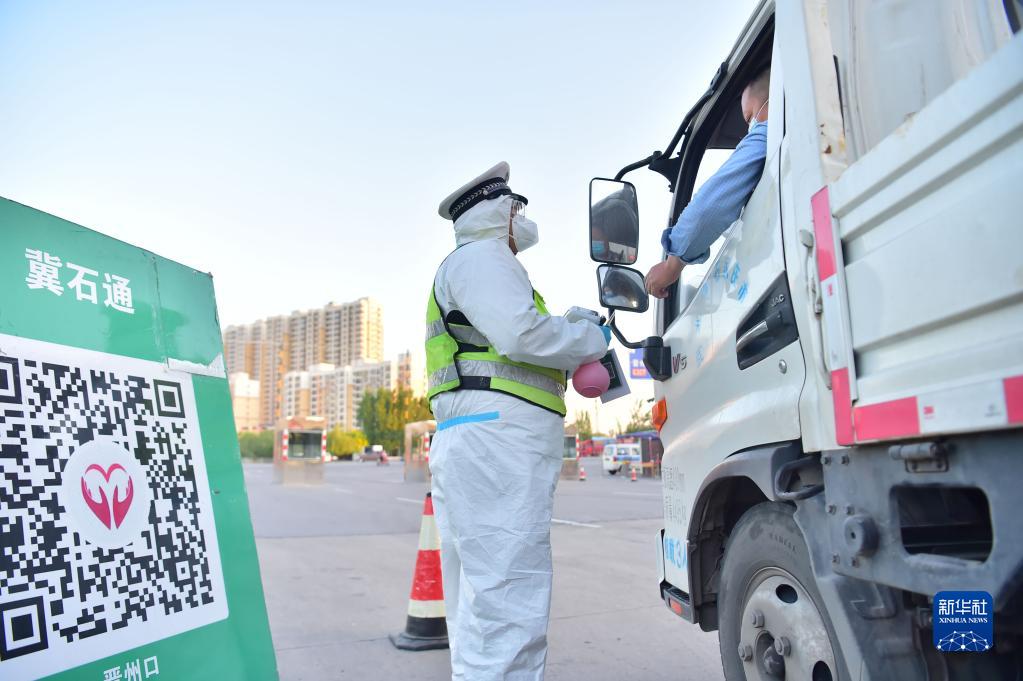 5月1日,在石家莊石黃高速晉州站口,交警對出站車(chē)輛進(jìn)行檢查。新華社發(fā)(張曉峰 攝)