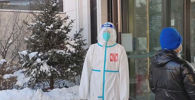 在吉林長(cháng)春一個(gè)核酸檢測點(diǎn)門(mén)前