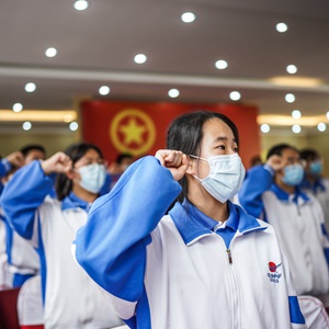 4月28日,貴陽(yáng)市烏當中學(xué)新團員進(jìn)行入團宣誓。新華社記者 陶亮 攝