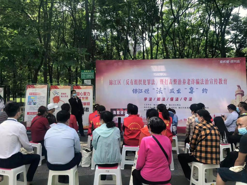四川省成都市錦江區人民法院劉俊佚法官到錦江區成龍路街道楓樹(shù)社區開(kāi)展《反有組織犯罪法》現場(chǎng)普法活動(dòng)(4月28日攝)。(受訪(fǎng)者提供)