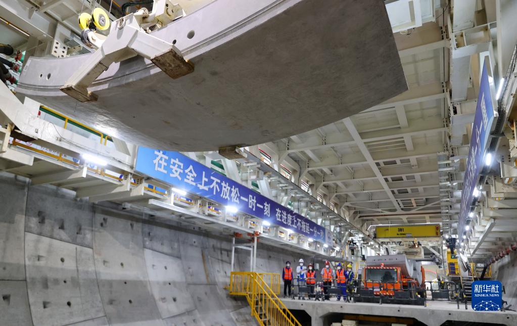 5月28日,在上海軌道交通市域線(xiàn)機場(chǎng)聯(lián)絡(luò )線(xiàn)工程11標段,工人在操作管片吊機進(jìn)行施工作業(yè)。新華社記者 方喆 攝