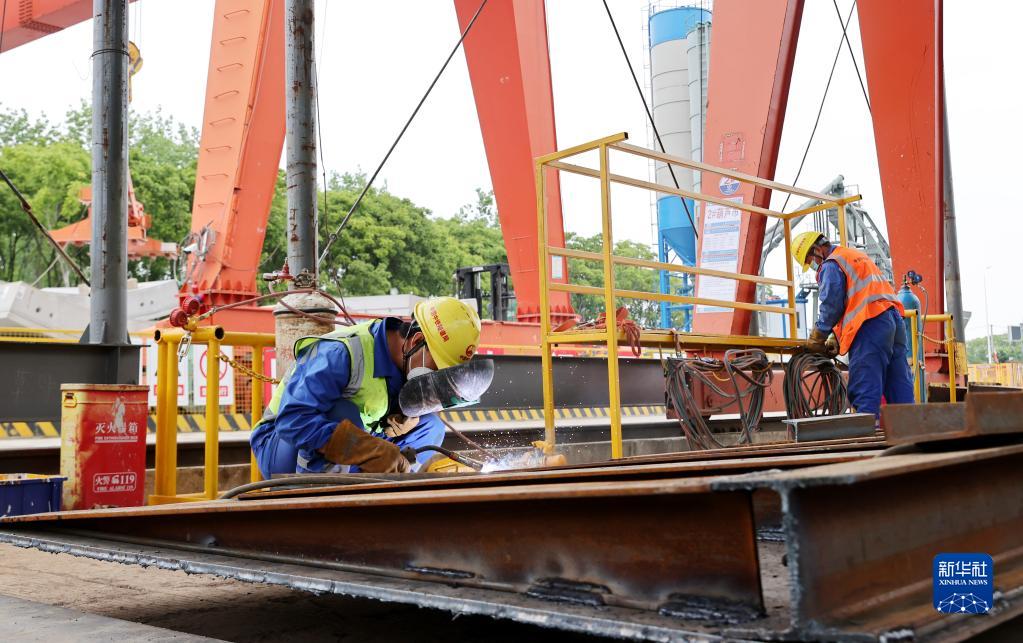 5月28日,在上海軌道交通市域線(xiàn)機場(chǎng)聯(lián)絡(luò )線(xiàn)工程11標段,工人在進(jìn)行電焊作業(yè)。新華社記者 方喆 攝