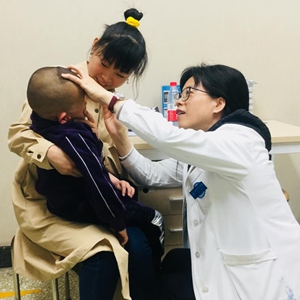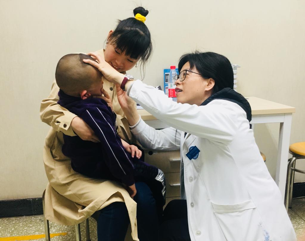 鮑永珍教授為小兒患者進(jìn)行眼病診療。(受訪(fǎng)者供圖)