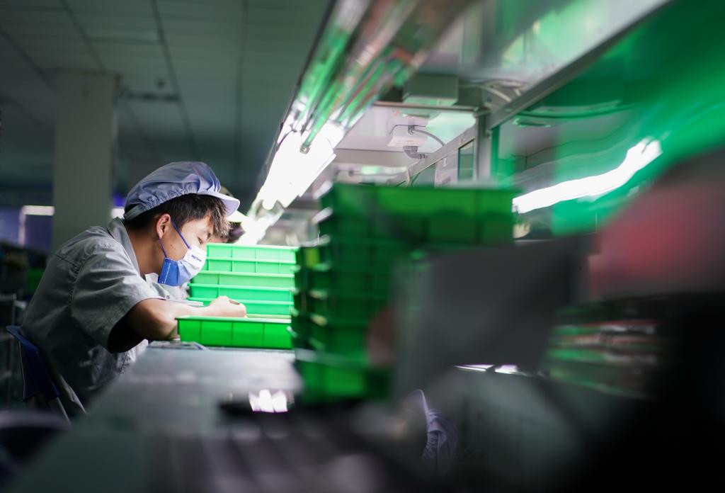 6月9日,江蘇精研科技股份有限公司工人在車(chē)間忙碌。(新華社記者季春鵬 攝)