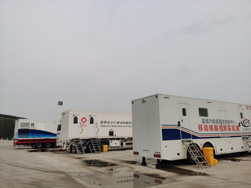 安徽省池州市疾控中心副主任魏鎖介紹,池州市本次支援靈璧縣兩輛日檢測5000單管的移動(dòng)核酸檢測車(chē)?!拔覀?月1日到靈璧縣,目前21位工作人員三班倒,確保24小時(shí)檢測?!蔽烘i說(shuō),檢測要快、更要準確,絲毫馬虎不得。