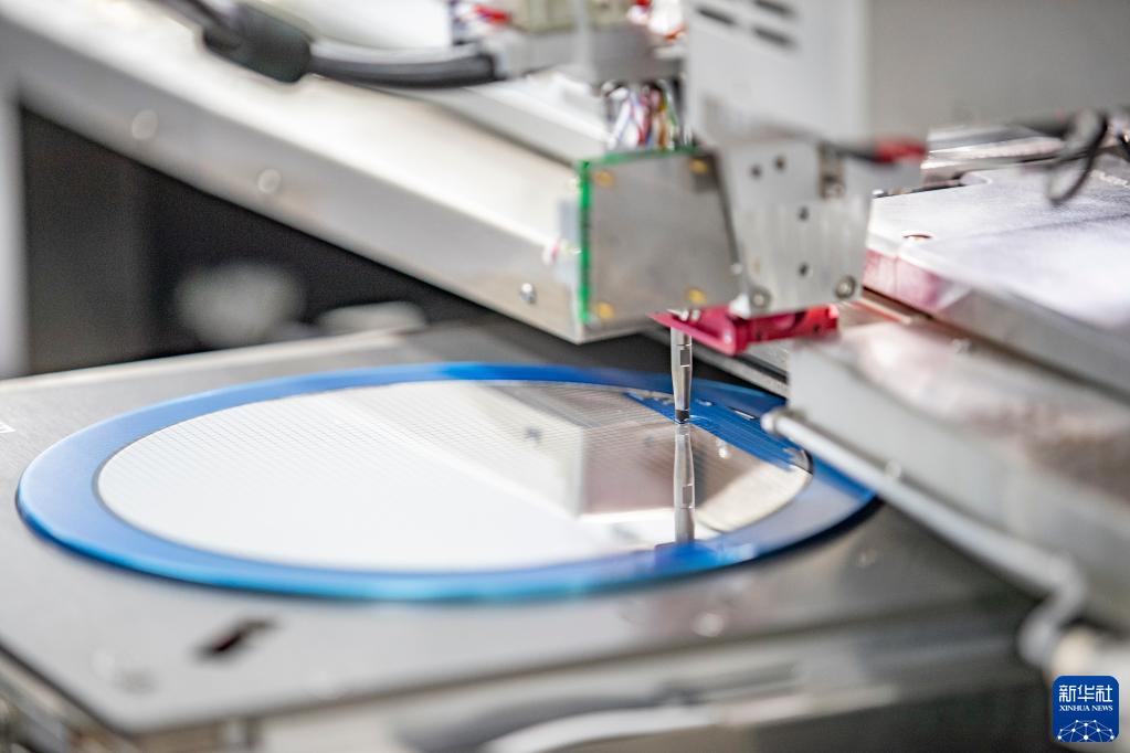 在重慶平創(chuàng )半導體研究院有限責任公司,工作人員利用設備對芯片進(jìn)行貼片作業(yè)(2022年4月15日攝)。新華社記者 黃偉 攝