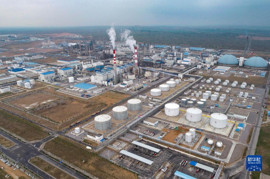 這是2021年8月12日拍攝的位于陜西省榆林市靖邊縣的延長(cháng)石油全球首套煤油氣資源綜合利用項目(無(wú)人機照片)。新華社記者 張博文 攝
