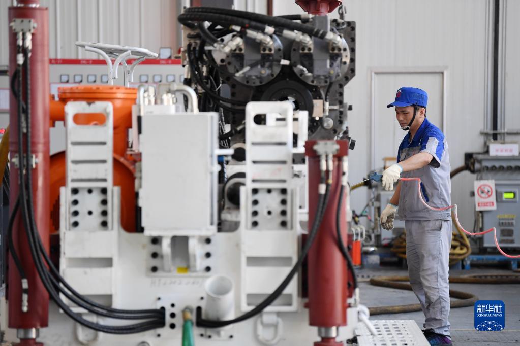 2022年6月17日,在秦創(chuàng )原總窗口所在地陜西省西咸新區的陜西太合智能鉆探有限公司,工人準備對智能定向鉆機進(jìn)行性能調試。新華社記者 李一博 攝