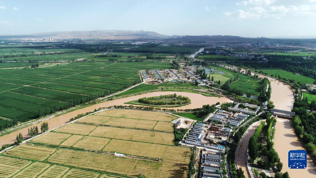 位于黃河分水口的寧夏青銅峽市大壩鎮韋橋村(2022年7月5日攝,無(wú)人機照片)。新華社記者 王鵬 攝