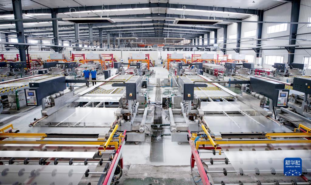 這是位于寧夏石嘴山市的寧夏金晶科技有限公司的光伏玻璃深加工生產(chǎn)線(xiàn)(2022年6月1日攝)。新華社記者 楊植森 攝