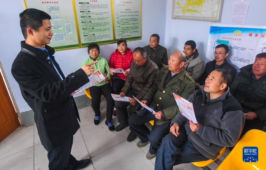 河北景縣紀檢監察干部為杜橋鎮西徐莊村村民講解監察法知識(2018年4月4日攝)。新華社記者 李曉果 攝