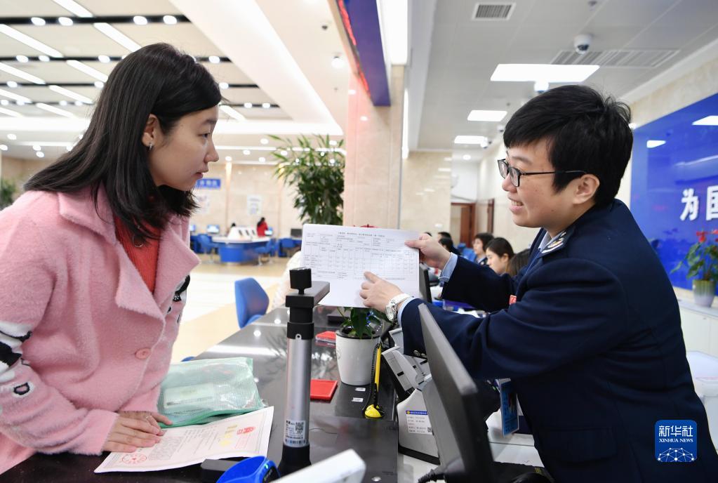 2020年1月21日,工作人員在國家稅務(wù)總局福州市鼓樓區稅務(wù)局辦稅服務(wù)大廳為企業(yè)財務(wù)人員介紹減稅申報表的填寫(xiě)方法。新華社記者 魏培全 攝