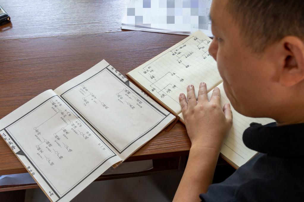 圖為柯偉力在抄錄劉氏族譜。(受訪(fǎng)者供圖)