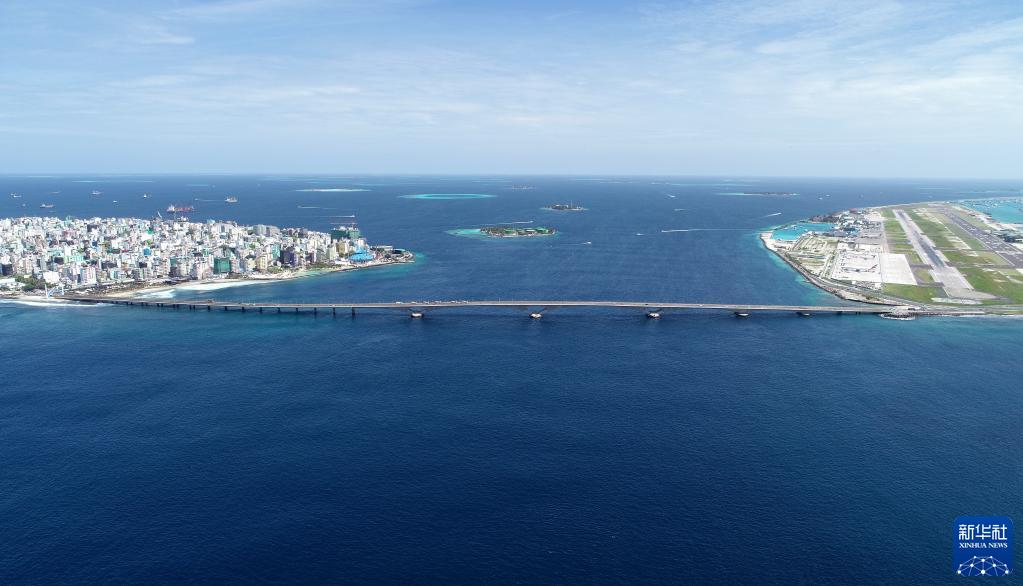 這是馬爾代夫連接首都馬累和機場(chǎng)島的中馬友誼大橋(2019年8月30日攝,無(wú)人機照片)。新華社發(fā)(王明亮攝)