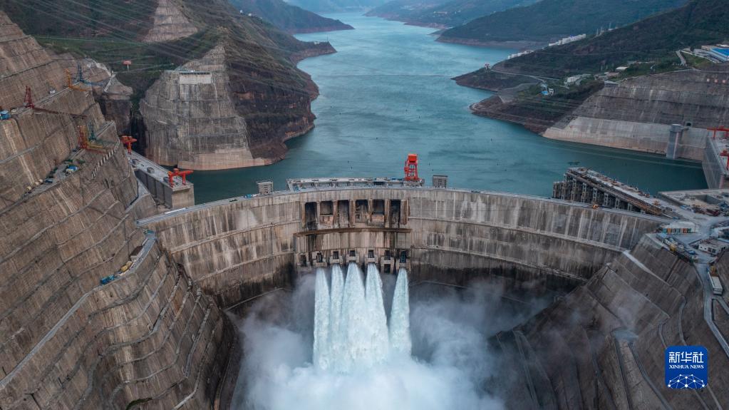金沙江上,白鶴灘水電站,一座拱形大壩橫亙在高聳的山谷間,承受1650萬(wàn)噸的最大水推力。