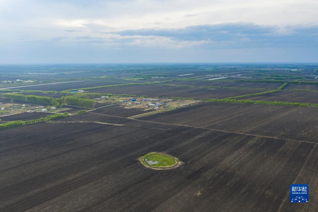 這是黑龍江省海倫市前進(jìn)鎮光榮村已完成播種的黑土耕地(無(wú)人機照片,2022年5月23日攝)。新華社記者 謝劍飛 攝