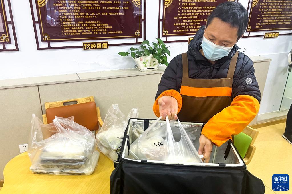 2022年11月3日,吉林省長(cháng)春市朝陽(yáng)區東田社區助老餐廳的工作人員準備為社區居民送餐。新華社記者 趙丹丹 攝