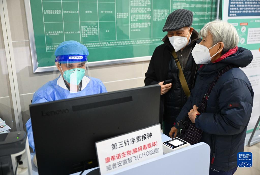 12月15日,在北京市海淀區中關(guān)村街道新冠疫苗接種點(diǎn),醫護人員為老年人接種新冠疫苗。新華社記者 任超 攝