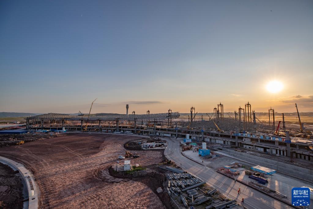 這是2022年10月1日拍攝的重慶江北國際機場(chǎng)T3B航站樓施工現場(chǎng)。新華社記者 黃偉 攝