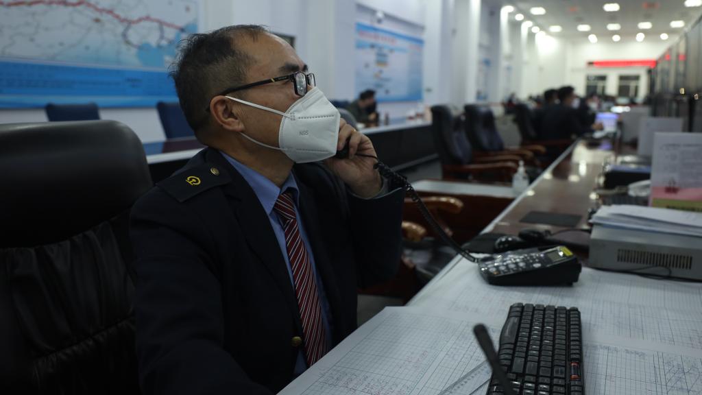 1月10日,馬世安在協(xié)調調度列車(chē)。新華社記者 王怡靜 攝
