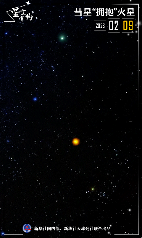 “天文愛(ài)好者如果在11日前后幾天連續觀(guān)測,不僅可以清晰地看到C/2022 E3彗星的移動(dòng)軌跡,還能看到它與火星‘擦肩而過(guò)’的視覺(jué)過(guò)程。在小型天文望遠鏡的視場(chǎng)中,火星為橙紅色,彗星為藍綠色,因此,如果能把這一過(guò)程拍攝下來(lái),會(huì )形成‘一紅一綠’較強的色彩對比,這將是一張非常有趣的天文照片?!睏铈赫f(shuō)。