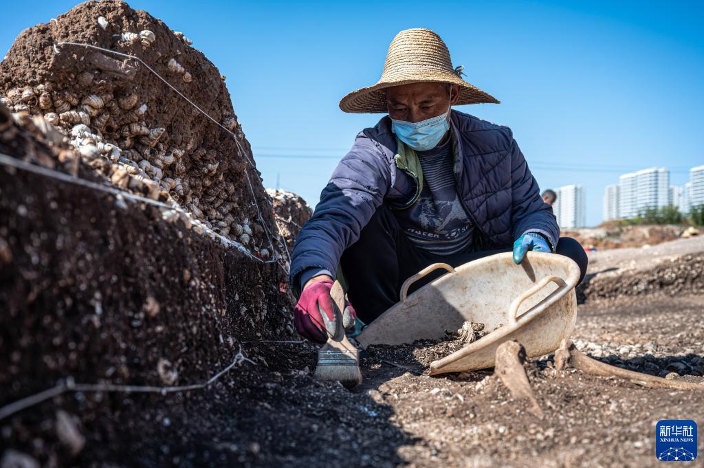 考古工作者在云南古城村遺址現場(chǎng)進(jìn)行清理發(fā)掘工作(2022年11月24日攝)。新華社記者 王冠森 攝