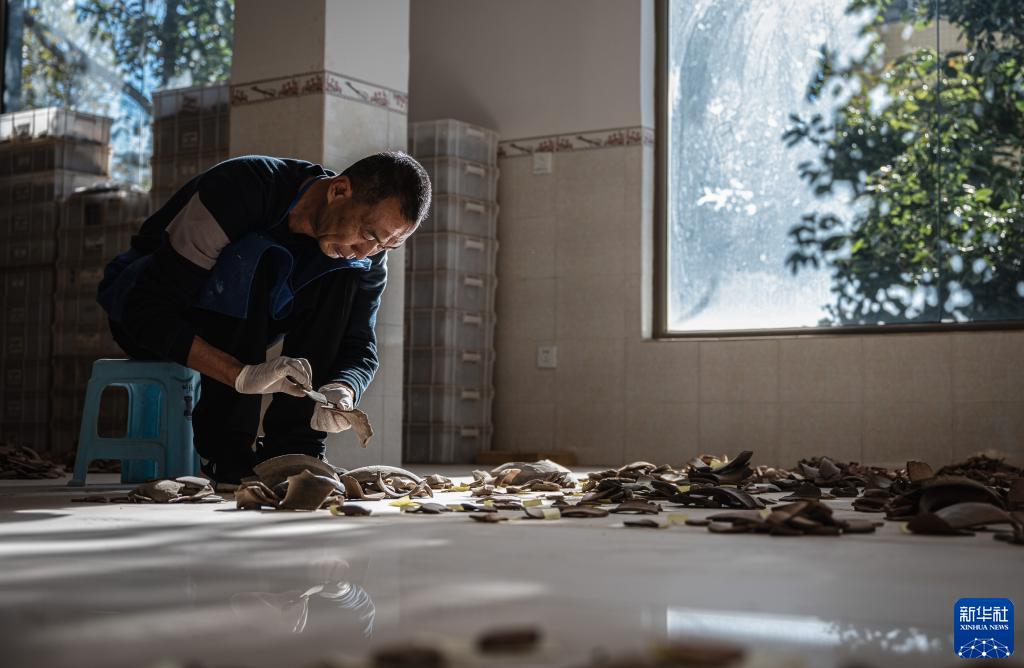 云南古城村遺址考古領(lǐng)隊、云南省文物考古研究所副研究館員周然朝在整理云南古城村遺址出土的文化遺物(2022年11月24日攝)。新華社記者 王冠森 攝
