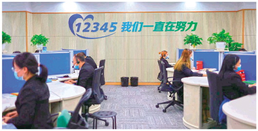 在12345熱線(xiàn)接聽(tīng)中心,每天近200人在崗,7×24小時(shí)在線(xiàn),日均2萬(wàn)余通電話(huà)接入。
