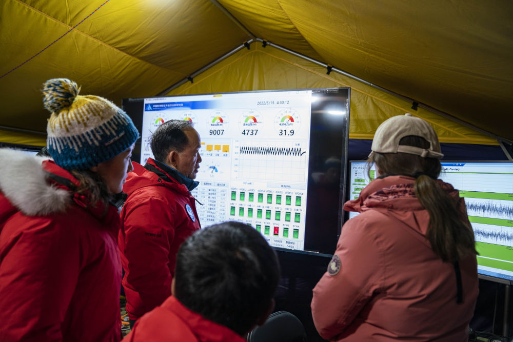 在海拔5200米的珠峰大本營(yíng)科考指揮帳里,科考登頂隊員每完成一項任務(wù),科學(xué)家和工作人員都報以熱烈的掌聲、喝彩聲。