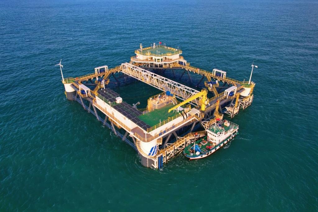 經(jīng)海008號深遠海智能化網(wǎng)箱。(煙臺經(jīng)海漁業(yè)供圖)