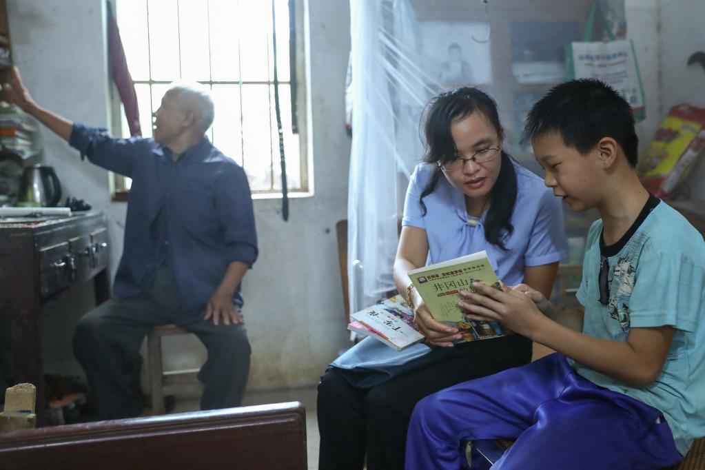 2020年9月20日,廣西靈山縣佛子鎮元眼村,兒童主任黃飛鳳在進(jìn)行家訪(fǎng)。 新華社記者 張玉薇 攝