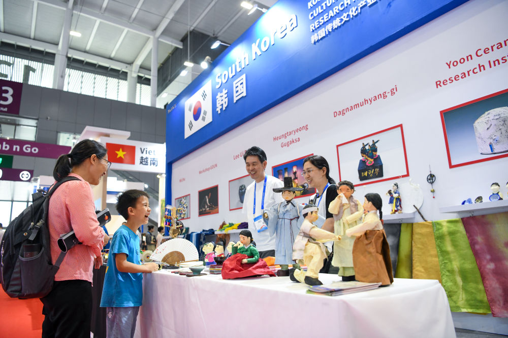 6月8日,觀(guān)眾在文博會(huì )上了解韓國的傳統商品和文化。新華社記者 梁旭 攝