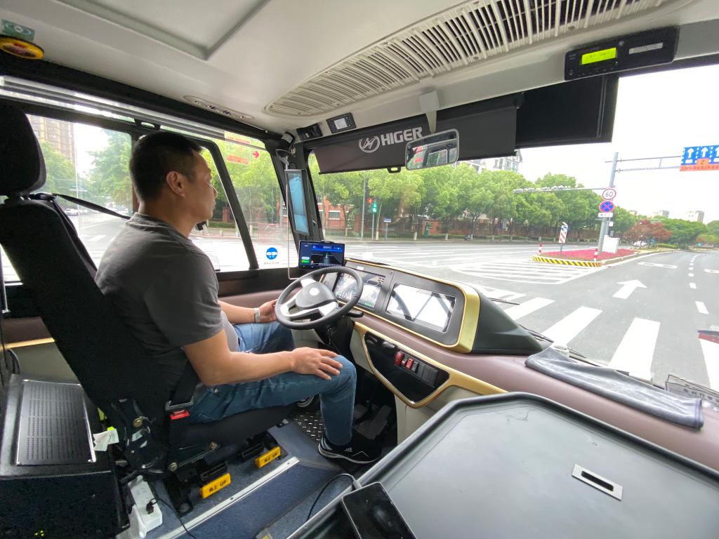 圖為在浙江德清,公交車(chē)司機開(kāi)啟自動(dòng)駕駛模式。新華社記者魏一駿 攝