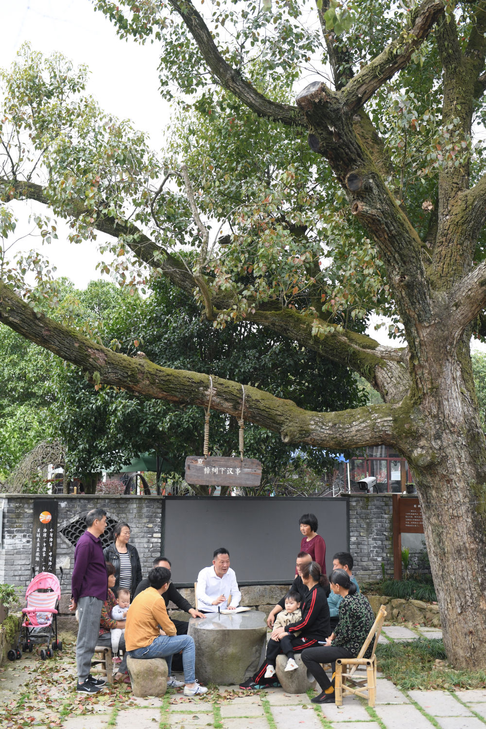 在浙江杭州市余杭區小古城村一株老樟樹(shù)下,村民在商議鄉村發(fā)展事項(2022年3月14日攝)。新華社記者 翁忻旸 攝