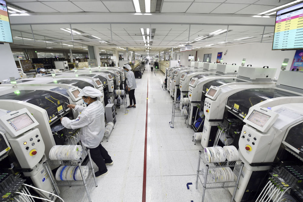 工人在位于安徽合肥的聯(lián)寶(合肥)電子科技有限公司生產(chǎn)車(chē)間內忙碌(2020年3月5日攝)。新華社記者 周牧 攝