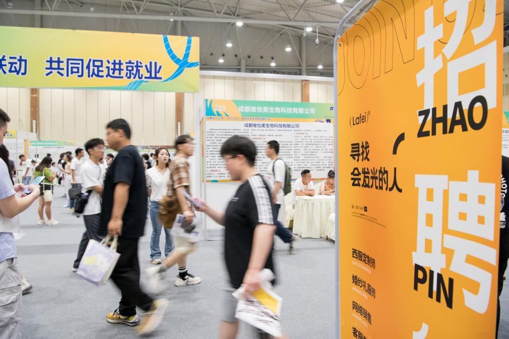 2023年7月2日,成都市2023年“百日萬(wàn)企高校畢業(yè)生系列招聘活動(dòng)”在成都世紀城新國際會(huì )展中心1號館啟動(dòng)。新華社記者 唐文豪 攝
