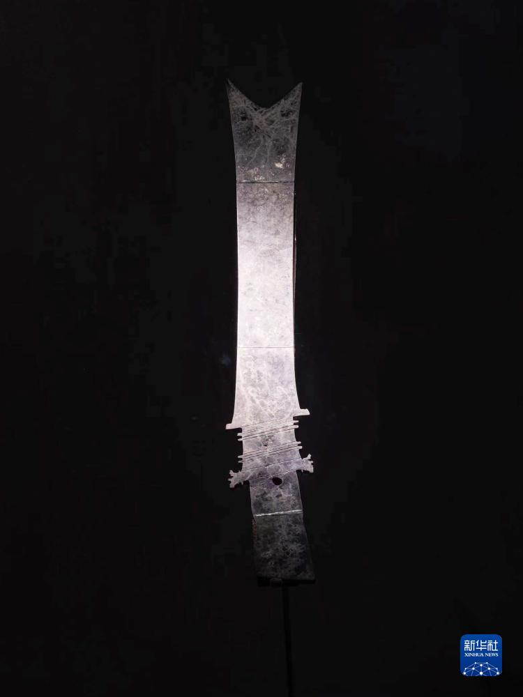 這是7月26日在三星堆博物館新館拍攝的玉璋。這是三星堆遺址目前出土最大的玉璋。新華社記者 童芳 攝