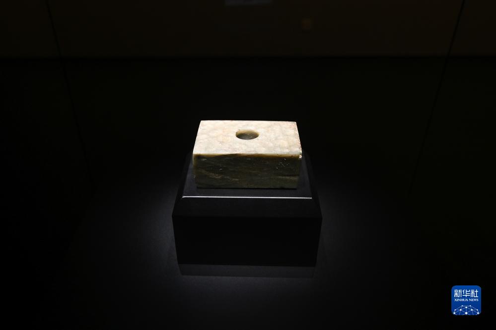 這是7月26日在三星堆博物館新館拍攝的獸面鳳鳥(niǎo)紋玉方座。新華社記者 王曦 攝