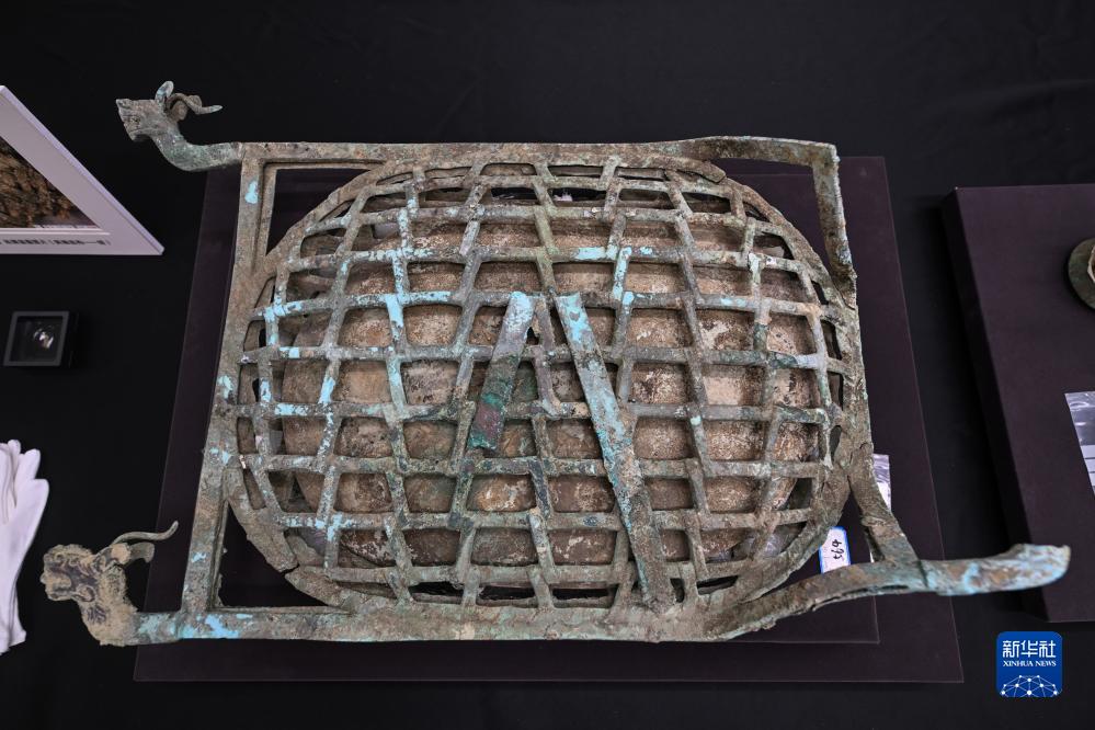 這是7月26日在三星堆博物館拍攝的青銅龜背形網(wǎng)格狀器。新華社記者 王曦 攝