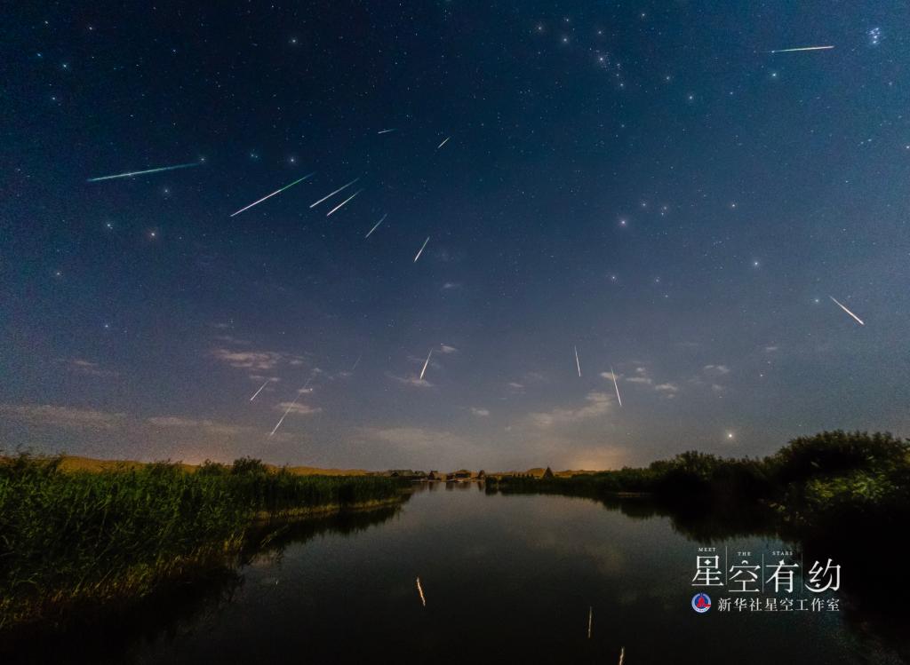 北京市天文攝影愛(ài)好者克留2017年8月12日在內蒙古自治區阿拉善盟月亮湖景區拍攝的英仙座流星雨(多張疊加)。(本人供圖)