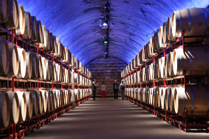 游客在張裕酒文化博物館內參觀(guān)已有百年歷史的地下酒窖(2023年6月12日攝)。新華社記者 朱崢 攝