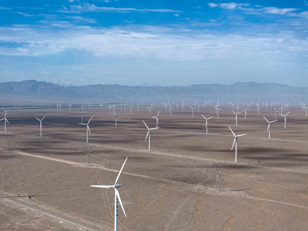 在玉門(mén)市西南的戈壁灘上,有一大片白色的“風(fēng)電森林”,這就是素有“陸上三峽”之稱(chēng)的酒泉千萬(wàn)千瓦級風(fēng)電基地。