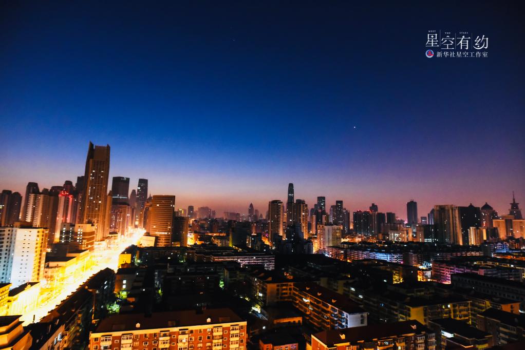 2021年10月10日,金星伴月天象在黎巴嫩貝魯特的夜空出現。新華社記者劉宗亞 攝