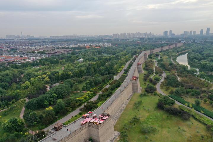 9月23日,游客在河北省石家莊市正定古城城墻上游覽。新華社記者 牟宇 攝