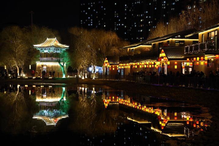 這是2月1日拍攝的河北省石家莊市欒城區古欒水鎮夜景。新華社記者 駱學(xué)峰 攝