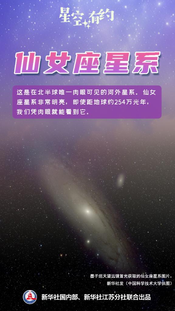 秋季星空還可以看到北半球唯一肉眼可見(jiàn)的河外星系——仙女座星系?!跋膳窍底陨碇睆郊s20萬(wàn)光年,是比銀河系還要大的旋渦星系?!蓖蹩瞥f(shuō),仙女座星系非常明亮,即使距地球約254萬(wàn)光年,我們仍然能夠憑肉眼就看到它,這也是我們在地球上肉眼可見(jiàn)的最遙遠天體。