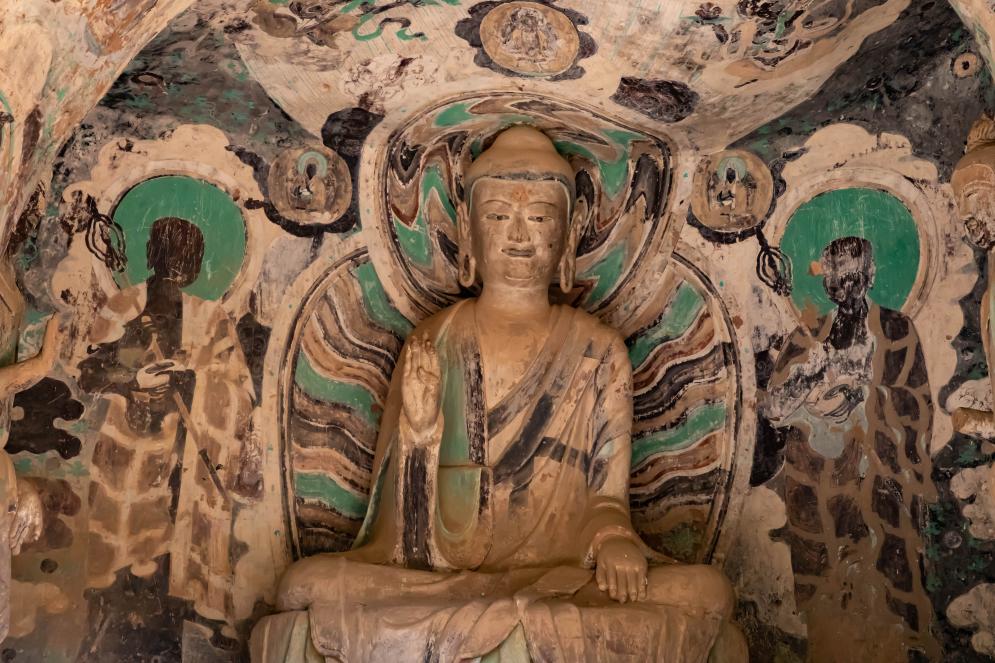 波紋發(fā)髻、高鼻深目……凝望第169窟中的佛像、壁畫(huà),來(lái)自古印度的犍陀羅藝術(shù)、秣菟羅藝術(shù)風(fēng)格濃郁。楊彩霞說(shuō),1600多年前,西秦工匠用高超的手藝,刻畫(huà)出佛教沿著(zhù)絲路東傳進(jìn)入內地時(shí)的最初樣貌。